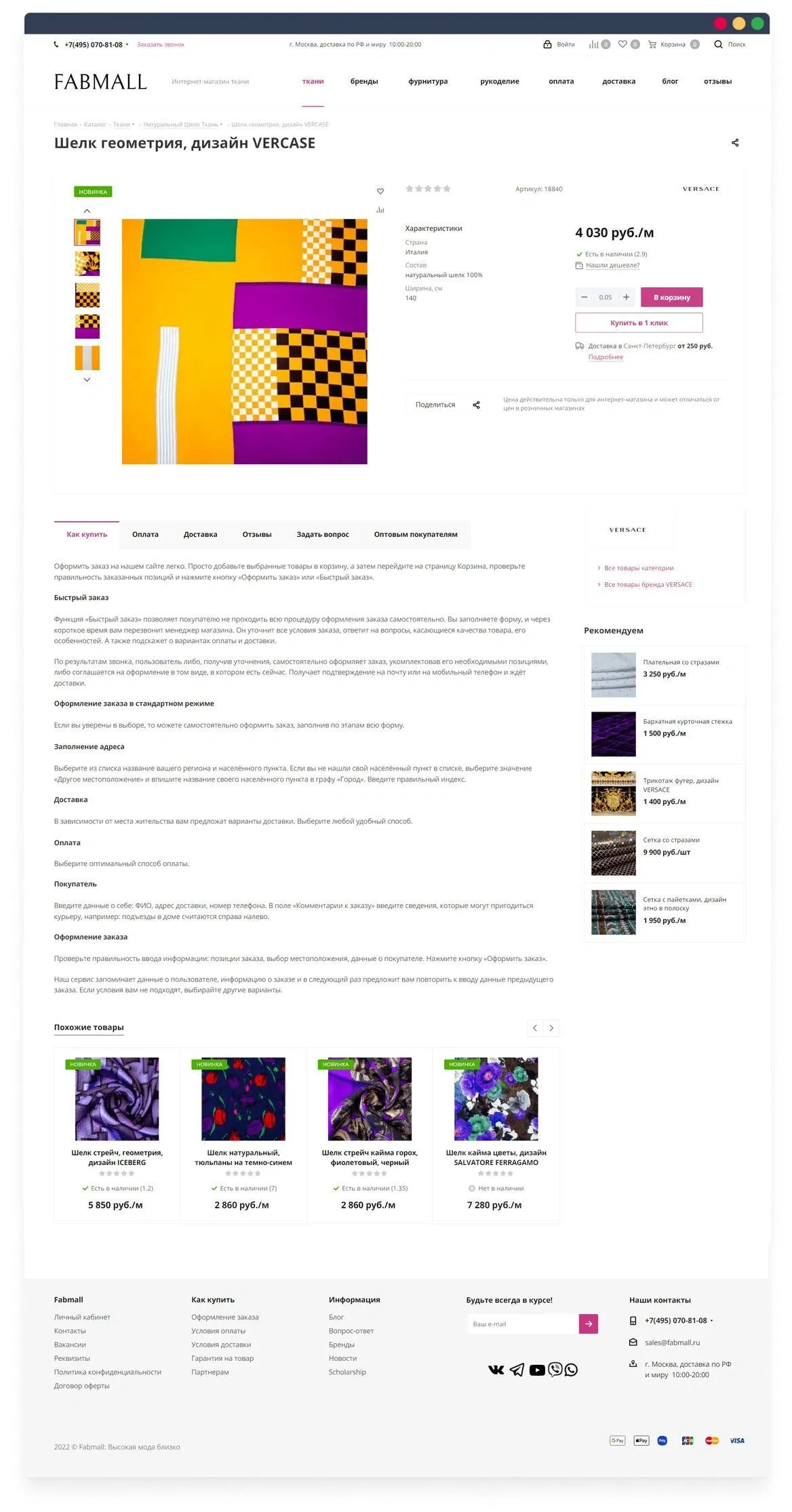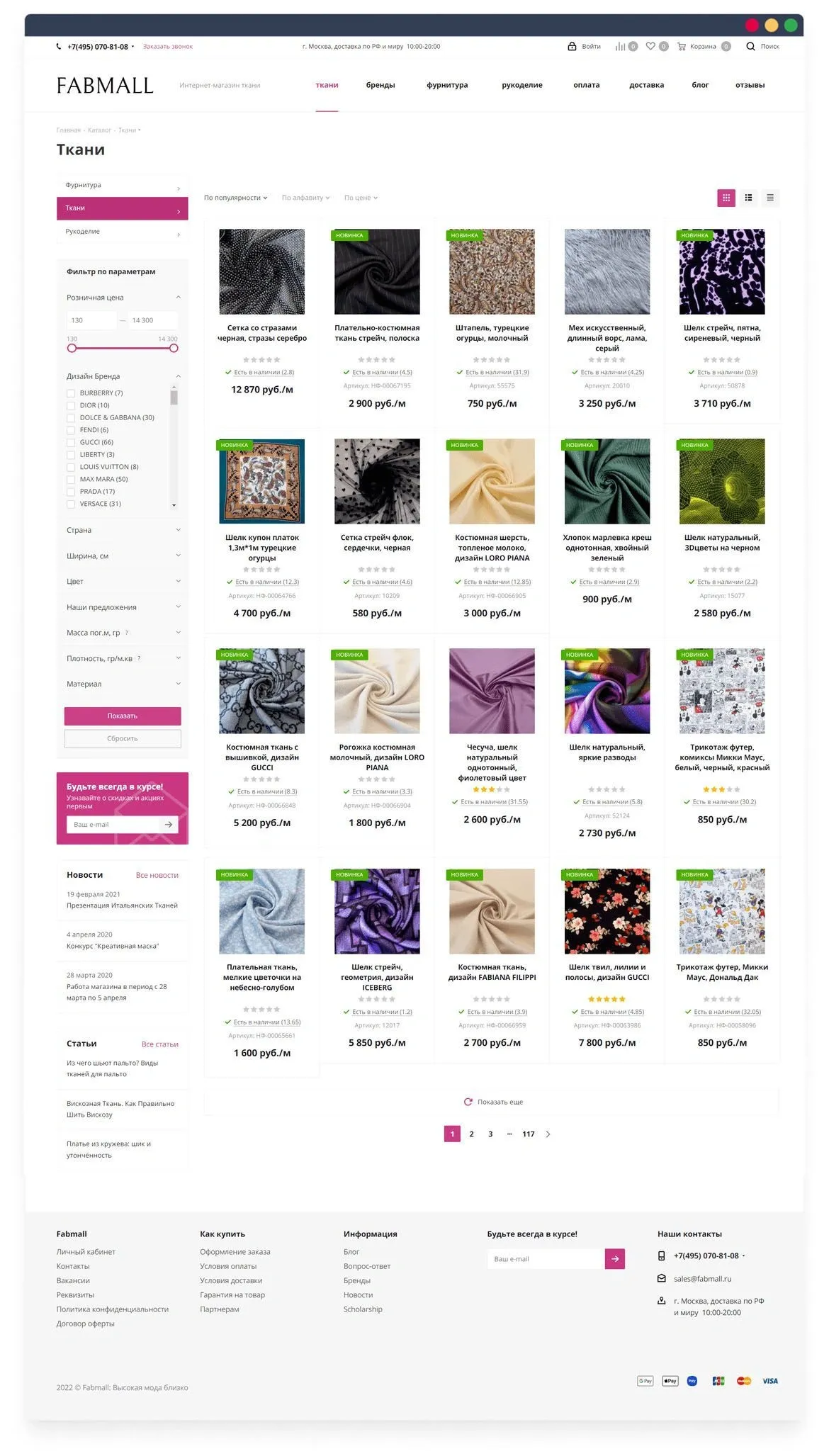 Разработали блог, в котором команда Fabmall.ru публикует обзоры на ткани, а также советы по работе с ними.