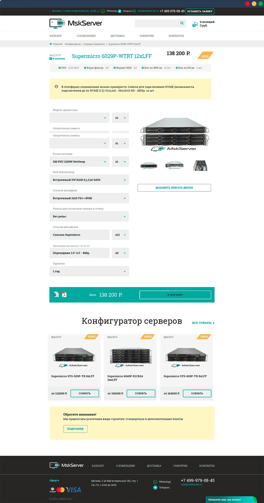 MskServer специализируется на поставке серверного оборудования ведущих мировых производителей, предлагая клиентам как новые, так и бывшие в употреблении серверы. Компания работает с бизнесом, которому важно получить надёжные серверные решения без переплат, сохранив баланс между стоимостью, производительностью и качеством оборудования. При работе над сайтом мы учитывали специфику технического B2B-каталога, высокую нагрузку на функционал и требования к стабильности и безопасности ресурса.