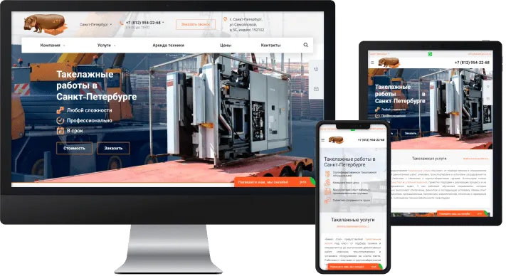 Цель: создать сайт по предоставлению такелажных услуг с соответствующим дизайном, удобным интерфейсом и понятной навигацией. Сделать ресурс конкурентоспособным, подготовить к дальнейшему продвижению в поисковых системах, в том числе и по регионам. Качественно представить услуги и тщательно проработать мобильную версию сайта.