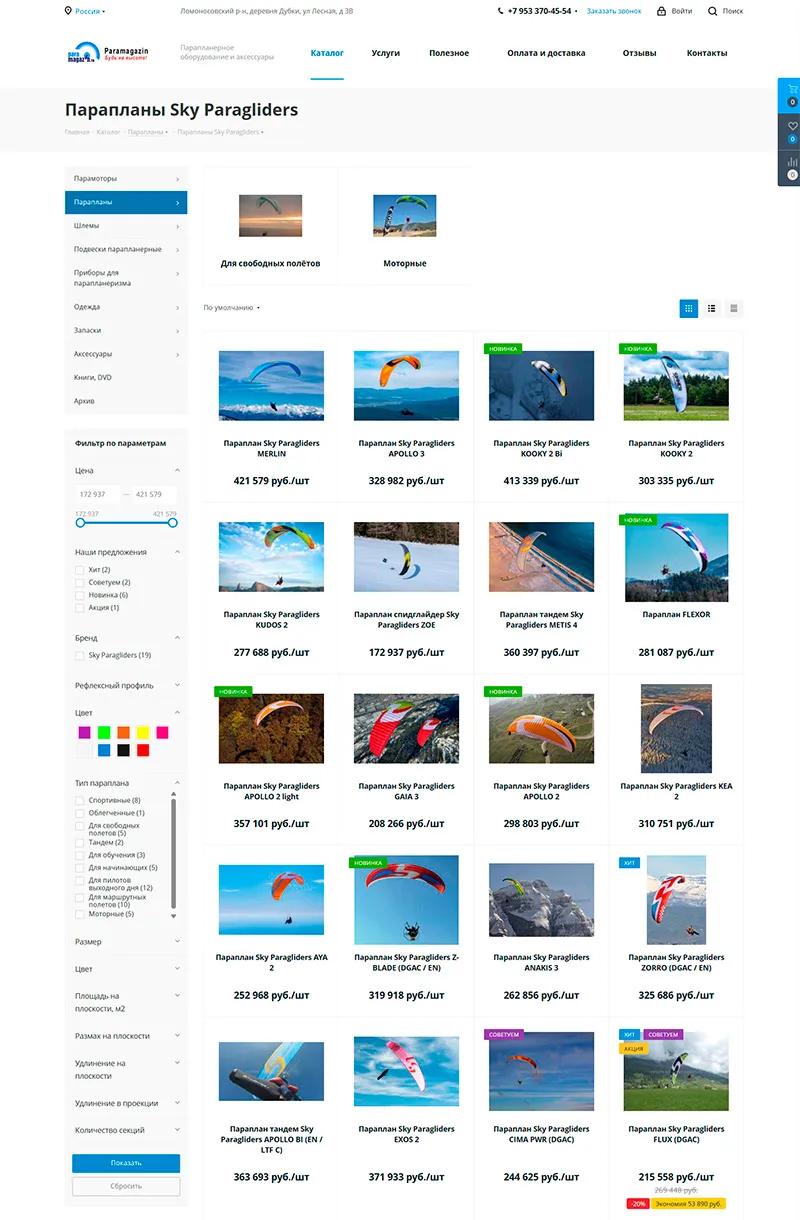 Paramagazin - спортивный интернет-магазин по продаже парапланов, парамоторов и парапланерного оборудования, аксессуаров и одежды для парапланеристов.