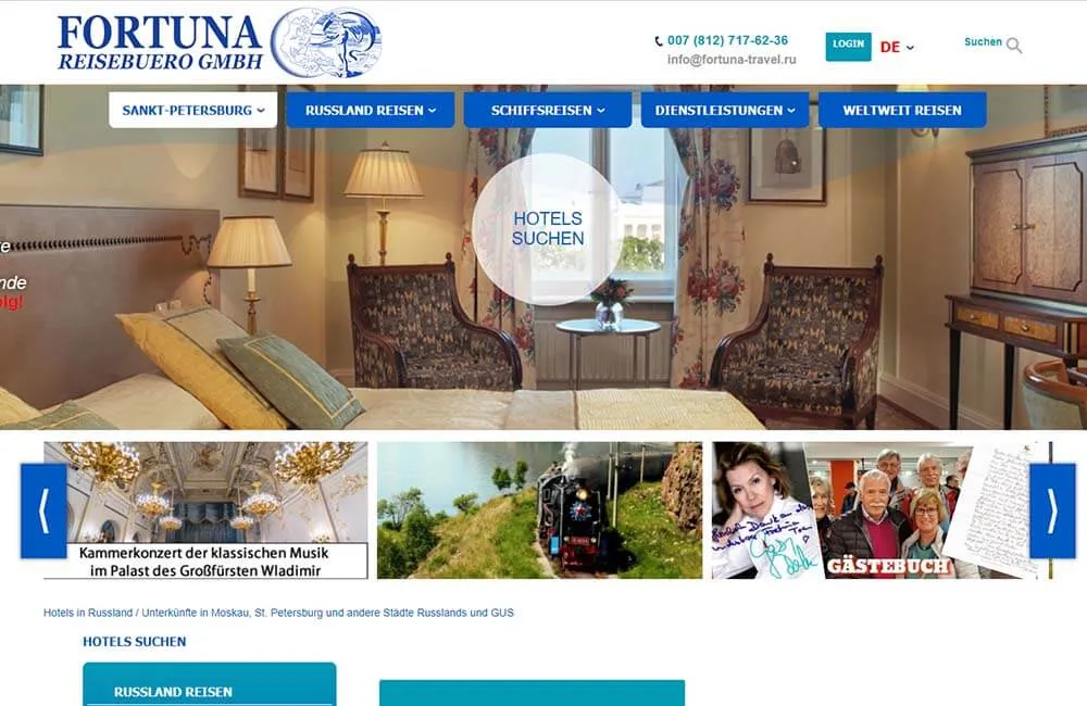 - Программирование: подбор тура, выбор круиза, слайдер на главной, карусель, форм получения заявок, подключение агрегатора отелей и гостиниц "Островок", вывод на печать страницы и многое другое.